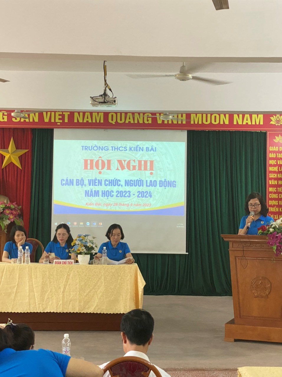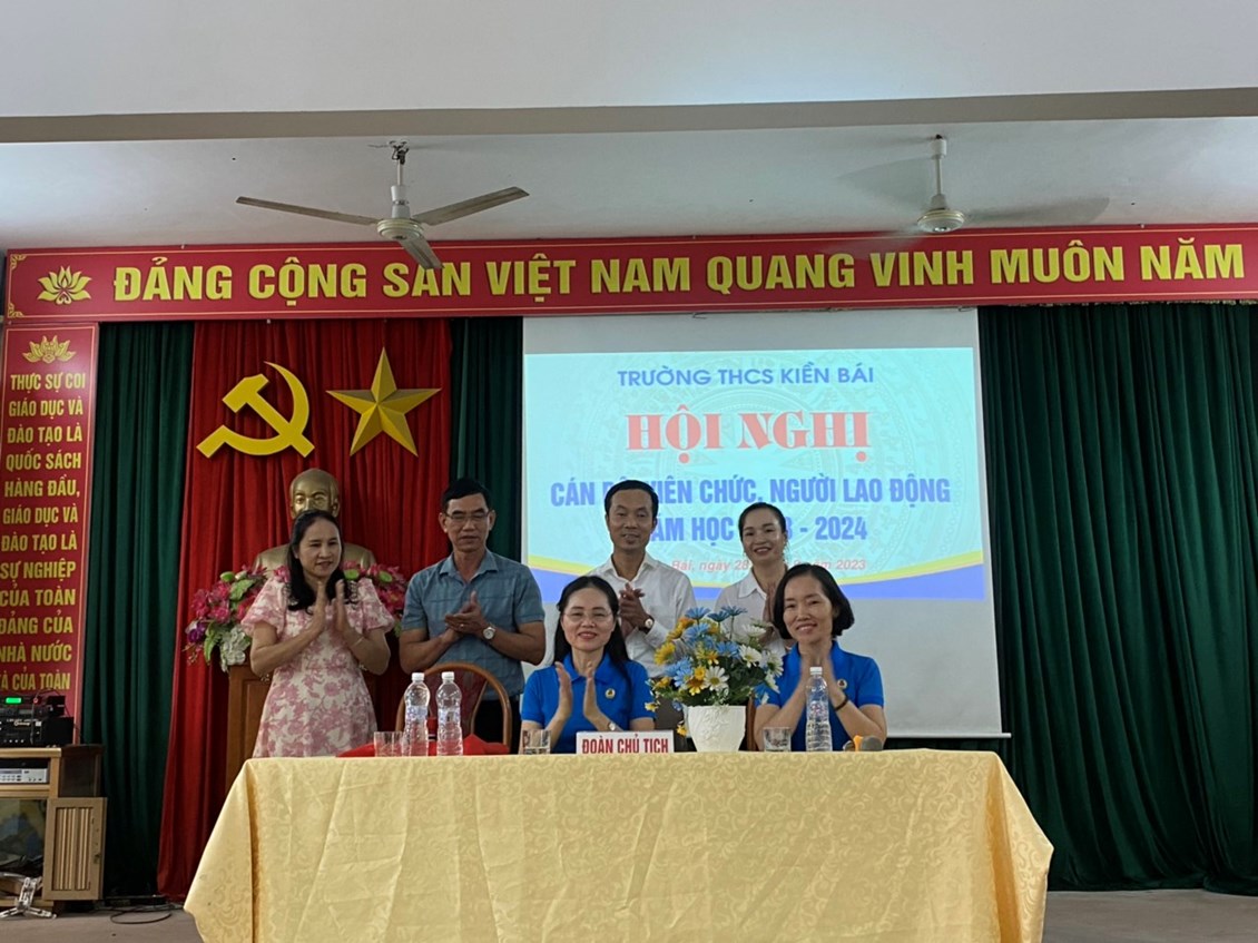 Ngày 28/09/2023, Trường THCS Kiền Bái long trọng tổ chức Hội nghị viên chức và người lao động năm học 2023-2024 nhằm tổng kết, đánh giá kết quả thực hiện Nghị quyết Hội nghị cán bộ viên chức và người lao động năm học 2022-2023 và xác định phương hướng, nhiệm vụ năm học 2023-2024.