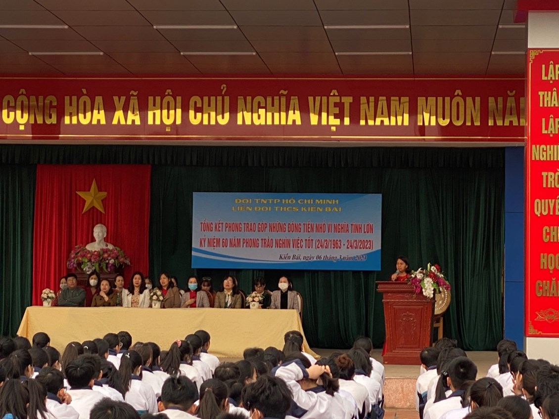 Thực hiện công văn liên ngành số 01/CVLN- CTĐ- PGD&ĐT – ĐTN về việc phát động cuộc vận động “ Góp những đồng tiền nhỏ vì nghĩa tình lớn- Tặng quà đầu xuân giúp các bạn nghèo và nạn nhân chất độc màu da cam năm 2023” với tinh thần tương thân tương ái Liên đội THCS Kiền Bái đã phát động phong trào Góp những đồng tiền nhỏ vì nghĩa lớn nhằm thi đua chào mừng 60 năm phong trào nghìn việc tốt.