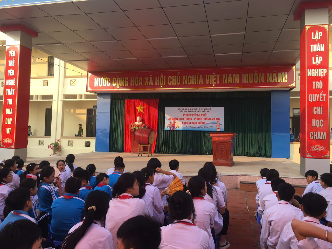 Thực hiện chương trình công tác Đội và phong trào thiếu nhi năm học 2024-2025; thực hiện nhiệm vụ giáo dục trong nhà trường. Hôm nay, Liên đội trường THCS Kiền Bái tổ chức chuyên đề “An toàn giao thông, phòng chống ma túy, bạo lực học đường” năm học 2024-2025.